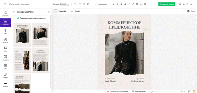 SUPA — графический онлайн-редактор со встроенной нейросетью. Сервис содержит библиотеку готовых макетов для бизнеса, социальных сетей, маркетплейсов. Пользователь без опыта в дизайне за несколько минут может собрать здесь товарную карточку, рекламный баннер или стильный коллаж. Функция SUPA Magic позволяет создавать уникальные проекты на основе пользовательских данных — достаточно загрузить фото и вписать текст — нейронка предложит до 10 своих вариантов оформления.
